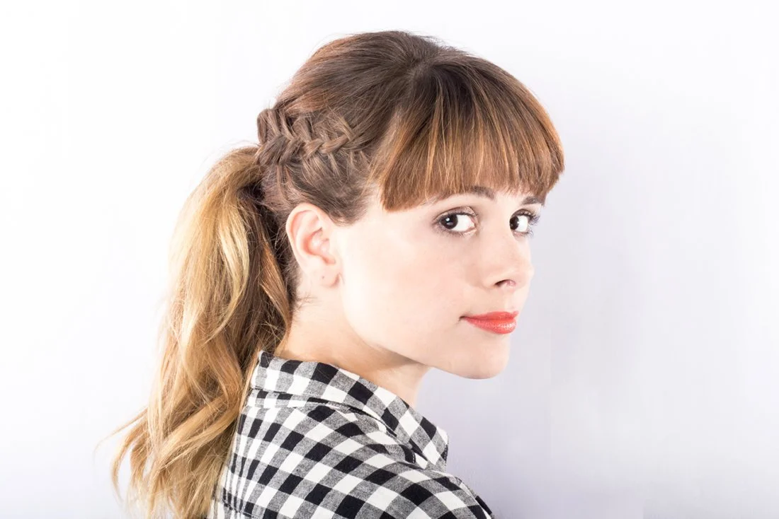 Betsy Hair Tip: To get this look, take a triangled section and make a loose braid and pull it loose to enhance it. Pull the braid into the ponytail and wrap the remainder of the braid around the base of the pony and pin! A great pony needs a great base, so a quick blow out using a barrel brush like Click N' Curl will give you a thick beautiful pony to finish the look.