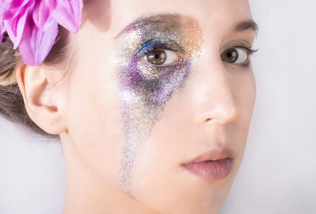 Makeup Products: MAC Cosmetics Glitters in the following colors - Reflects Purple Duo, 3D Black, Fuchsia, Gold, and Reflects Turquatic; applied using Manic Panic’s Glam Glue
